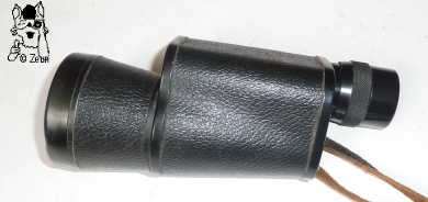 The 12x50 porro monocular was made with trademark EIKOW in Japan probably in the 1960s-70s. The company joint another and is now Mizar Optic in Japan. The optics are coated blue. It weighs 438g, is 177-181mm long, and measures 61x61mm at the top of the housing and 71x71mm at the bottom. The objective tube is 61mm, the ocular piece is 31mm, the focusing ring is 36mm and the eyecup 34mm in diameter. The dioptre scale at the right-hand sided ocular ranges from +2 to -4. The cover plates have one screw. The top one is marked "EIKOW Air Port 7x50 Field 7.1° No. 339214" and has the Eikow prism logo, a 90° outlined 3D prism. |