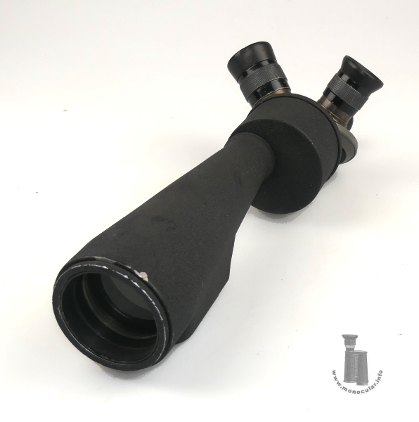 | Das Fournier Prismen-Teleskop vom Typ V hat einen Okularrevolver mit drei Vergrößerungen. Diese sind 14fach, 21fach und 28fach. Die Beschriftungsscheibe in der Mitte des Okularrevolvers ist mit dem Firmenlogo "G. Fournier Paris V - 39" und den Vergrößerungsstufen nahe der Okulare graviert. Das Objektiv ist 50mm im Durchmesser. Die Okulare haben eine komplett umlaufende Dioptrienskala, gekennzeichnet bei null und jeweils Fünf bei Plus und Minus. Der konische Objektivtubus mit angegossenem Prismengehäuse (Porro II Prismen), der 5fach verschraubte Gehäusedeckel und Okulartubus sind mit einem anthrazit-farbigen Raulack beschichtet. Der Messing-Okularrevolver ist grau lackiert, die Metallteile der Okulare schwarz, wobei die mi t Schräubchen gesicherten Okularhülsen blank. Am Objektivtubus befindet sich eine Schwalbenschwanzmontierung. Der aufsteckbare Blendschutz fehlt (vgl. Pietrini: Le Grande Guerre des Jumelles, vol. II, S. 266) und es gibt keine Strichplatte. |