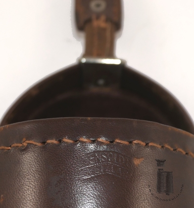 | Der Lederköcher ist vorne oben mit dem Hensoldt-Logo gestempelt. | The elatehr case is stamped with the Hensoldt logo on the top front side. |