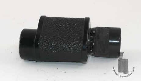 | Das "Grossfeld" Modell 6x24 wurde von Hensoldt ab ca. 1928 bis ca. 1940 gebaut. Auf dem oberen Deckel ist ein Sehfeld von 160m angegeben, somit handelt es sich um die 2. Variante ab 1933 mit etwas größerem Sehfeld als zuvor (150m). Dieses 6x24 dürfte zwischen 1933 und 1936 gefertigt worden sein. Der untere Deckel trägt das Firmenlogo und die Seriennummer 351721. Beide Deckel sind jeweils nur mit einer Schraube befestigt. Es ist ein typisches Porro-1-Prismenmonokular mit Hartgummiummantelung, schwarzer Lackierung und einem Okular mit Dioptrienausgleich - gekennzeichnet bei 0 und +/-5 - und einer Plastikaugenmuschel. Die Trageriemenöse ist am Korpus eingegossen. Das 6x24 wiegt 167g, ist 103-113mm lang und die Objektivfassung ist 34mm, das Okularstück 30,5mm, der kreuzgeriffelte Fokussierungring 35mm und die Augenmuschel 34mm im Durchmesser. |