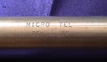 Aluminium Penscope *The penscope depicted here is made of aluminium. It looks as made some decades ago. There is no producer's name, but only the inscript "Micro 25x Tel 6x" (s. photo). Possibly it was already made before WWII by the US firm DuMaurier located in Elmira, N.Y. |