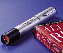 Stift-TeleskopeStiftteleskope können als Mini-Monokulare fungieren – sie sehen wie Kleinsttelskope aus. Aufgrund des kleinen Tubusdurchmessers und der dadurch bedingten kleinen Eintritts- und Austrittspupille, ist ein Fixieren recht gewöhnungsedürftig und die Lichtstärke sehr gering. |