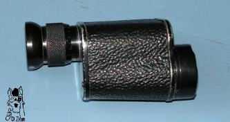 The crystar is a porro 1 monocular with an aluminium housing and a rough paint covering. It has a strap lug and a plastic eyecup. The top cover plate is marked "Wray London Crystar 6x30", the bottom one with S/N 96716.