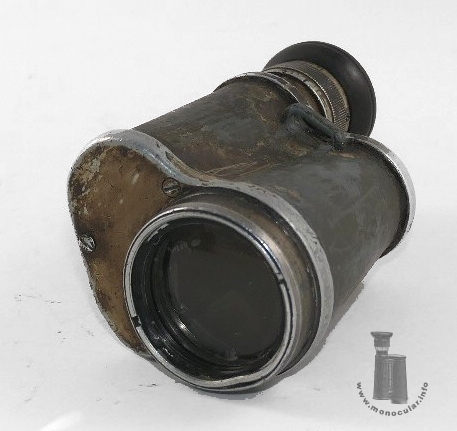 | Bei dem Monokular hier handelt es sich um ein monokulares Dienstglas (so gekennzeichnet) der deutschen Wehrmacht aus dem 2. Weltkrieg. Es trägt den Code "ddx" mit einem Punkt am Ende (ddx.), welcher für die Fa. Voigtländer & Söhne aus Braunschweig steht. Als Seriennummer ist 328805 sowie das Dreieckssymbol für temperaturbeständige Dichtungsfette zur Benutzung unter extremen Temperaturbedingungen eingeprägt. Das Trageband, soweit überhaupt Original, ist gerissen. Der Metallkörper und die Abdeckplatten sind teilweise noch bzw. waren sandfarben ('Dunkelgelb nach Muster') lackiert. Ein Exemplar mit Seriennummer 346825 sowie weitere bestätigen diese Merkmale. |