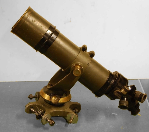 | Das erste Modell hatte am Haupttubus eine Ringschelle mit Zapfen, die in eine Stativgabel gelegt und arretiert wurden. Einige Stativadapter waren mit Feintrieb (Modell 1) oder Richtkreisen (Modell 3) ausgestattet. Letzteres war mit "Monok. A.F. 12.20.40x80" beschriftet und wahrscheinlich als militärisches Beobachtungsfernrohr ausgelegt (vgl. 1912er Katalog T.807 mit Titel "Signalgeräte, Scheinwerfer, Beobachtungsteleskope"), so dass auch die grünliche Lackierung Original sein könnte. (Quelle 1, Quelle 2). | There is a clip collar on the tube of the first models with cast-in trunnions which go into a tripod yoke and are locked there. Some tripod adapters had a fine adjustment (model 1) or a division circle (model 3). The latter one was inscribed "Monok. A.F. 12.20.40x80", and was probably intended for military use (cf. 1912s catalogue T.807 with its title "Signalling Apparatus, Projectors, Observation Telescopes") so that dass the greenish lacquering seems to be fitting and original. (Quelle 1, Quelle 2). |