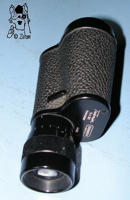 The monocuakr has coated optics. The eyecup is made of plastic, and the right-hand sided ocular has a dioptre scale completely running around the tube, but only marked with +, 0 and -. The glass weighs 227g. It is 114 - 122mm tall. The housing measures 49x49mm at its top and 55x55mm at its bottom. The objective frame is 39mm, the ocualr Okular 28mm, and the eyecup 33mm in diameter.