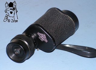 The glass has a dioptre scale around the ocular being marked from + to - 5. The eyecup is made of plastic. The lug is fitted with a small hand carrying strap.