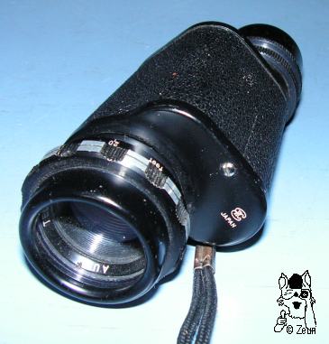 | Das Lafayette 8x30 Photo-Monokular ist im Wesentlichen identisch mit dem Lafayette 6x30m. Neben dem Herstellerlogo und den Aufdruck "Japan" am unteren Deckel, ist der obere Deckel mit "Lafayette 8x30 Photo-Monocular No. 3561" gekennzeichnet. Die Okularlinse hat ein blaue Vergütung. Mit 37mm Länge ist das Okularteil etwas länger als beim 6x30. | The Lafayette 8x30 Photo-Monocular basically is the same as the Lafayette 6x30m. Besides the maker's logo and "Japan" marked on the lower cover plate, the upper cover plate is inscribed "Lafayette 8x30 Photo-Monocular No. 3561". The ocular lens is coated blue. Being 37mm long the eyepiece is slightly longer than the 6x30 one. |