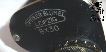 Like the 6x30 monocular by "Optiker Blümel Leipzig" the 8x30 model was also made by Spindler & Hoyer. Again the markings are characteristic for S&H, and the serial number "75008" ist stamped into the strap lug. The monocular has cover paltes with one screw. They are painted black and made of brass. The outer objective tube is part of the lower housing plate. The dimensions are also almost the same. The porro 1 monocular's housing measures 45x45mm at its top and 50x50mm at its bottom. The objective frame is 34mm, the eyepiece 23.5mm, the focusing ring 27mm, and the eyecup is 33mm in diameter. The 8x30 weighs 240g. |