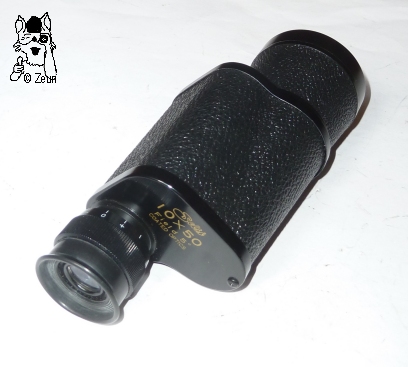 | Das Selsi 10x50 stammt aus Japanischer Produktion. Es ist am unteren Deckel mit "Japan 2007" sowie mit dem Aufkleber "Passed" des Japan Telescope Inspection Institute und einem Herstellerlogo gekennzeichnet. Der obere Deckel hat die Aufschrift "Selsi 10x50 Field 5° COATED OPTICS". Die Vergütung ist blau. Das linksseitige Okular ist zur Fokussierung mit der Dioptrienmarkierung + (2 Striche) und - (4 Striche) sowie "Null" beschriftet. Der Fokussierungsteil und der Dioptrienring sind aus Plastik, die Augenmuschel ist aus Weichgummi. Die Deckel sind einfach verschraubt und schwarz lackiert. Das Gehäuse hat eine strukturierte Kunststoffummantelung sowie eine eingegossene Trageöse. | This Selsi 10x50 was made in Japan. It is marked "Japan 2007", plus a maker's logo, as well as labeled "PASSED" by the Japan Telescope Inspection Institute on its bottom cover plate. The top cover is inscribed "Selsi 10x50 Field 5° COATED OPTICS". The optics are coated blue. The left-hand sided ocular has plus (2 division lines) and minus (2 division lines) dioptre markings and a zero. The dioptre and focusing ring are made of plastic, the eyecup is made of sof rubber. The cover plates have one screw and are painted black. The housing is covered with some textured plastic. it has a cast-in strap lug. |